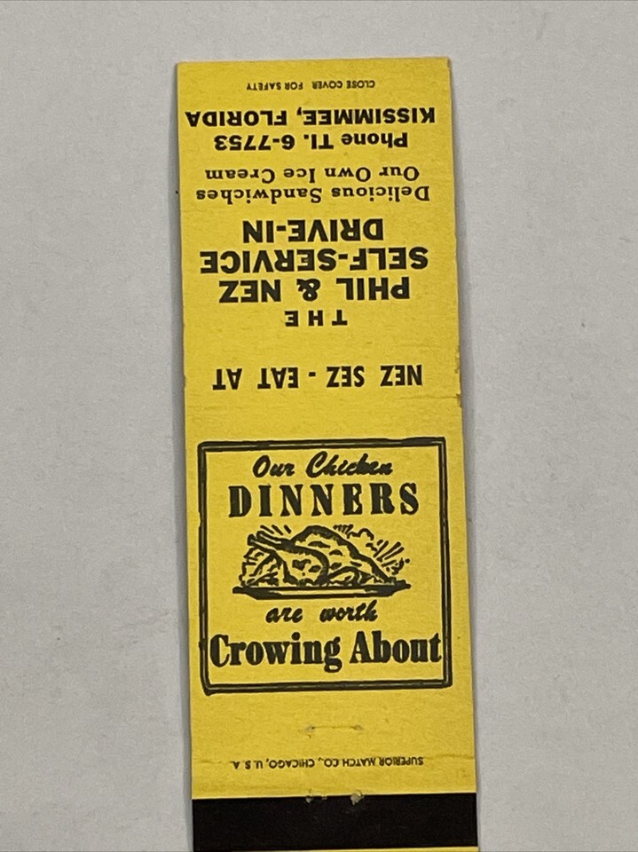 Rare Vintage Matchbook Cover Phil & Nez Self-Service Drive-Inn Kissimmee FL gmg