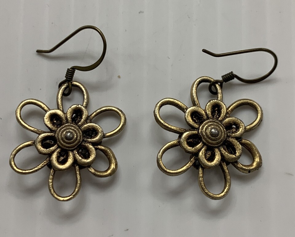 Vintage Gold Tone Flower Drop Dangle Earrings Boho Estate Jewelry Find KG