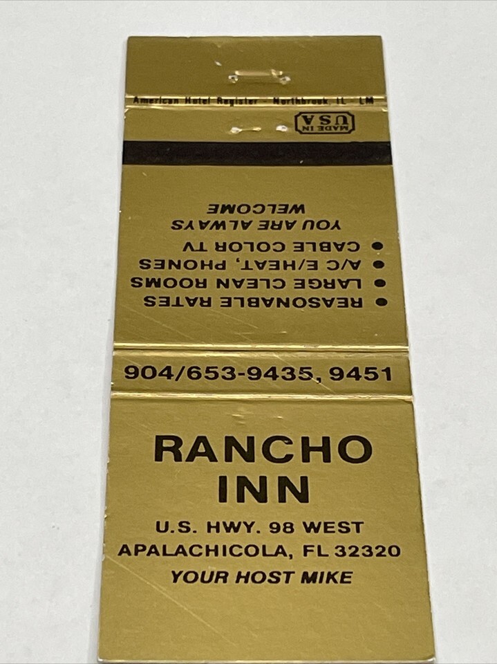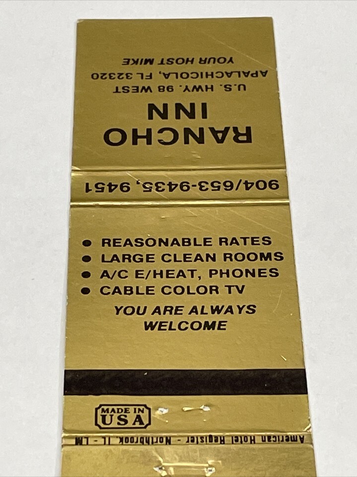 Vintage Matchbook Cover Rancho Inn Apalachicola, FL gmg Unstruck