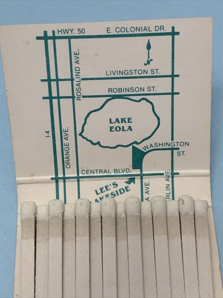 Vintage Matchbook Cover Lee’s Lakeside Restaurant& Tavern Lake Eola Orlando gmg