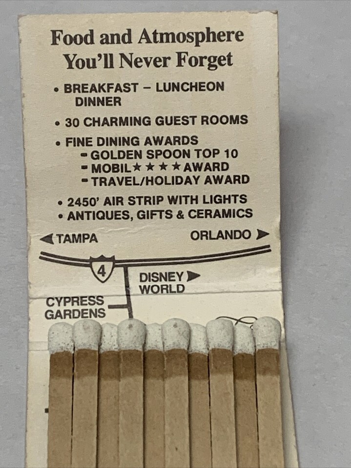 Vintage Matchbook Cover Chalet Suzanne Restaurant Country Inn Lake Wales, Fl gmg