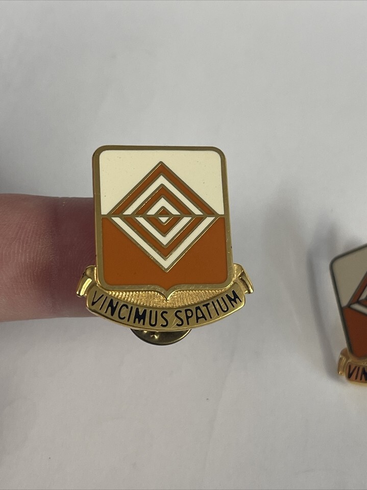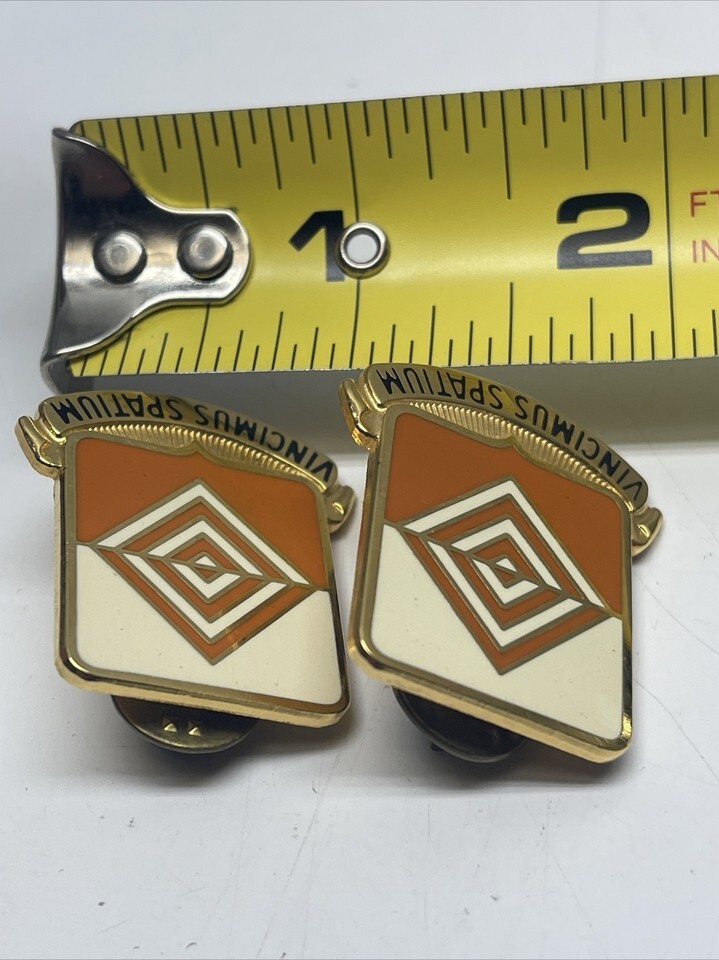 Pair Of US Military 57th Signal Battalion Insignia Pins - Vincimus Spatium EUC