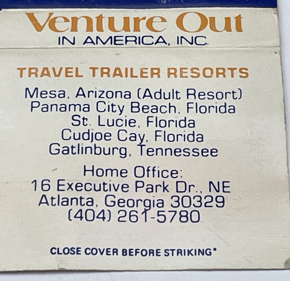 Vintage Matchbook Cover Venture Out In America, Inc Travel Trailer Resorts gmg