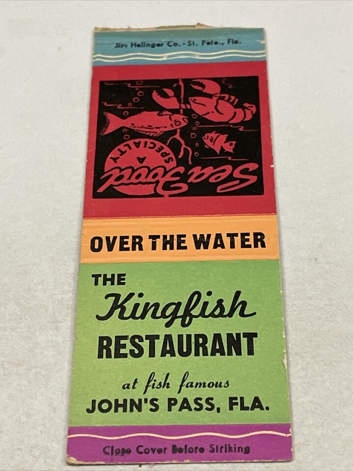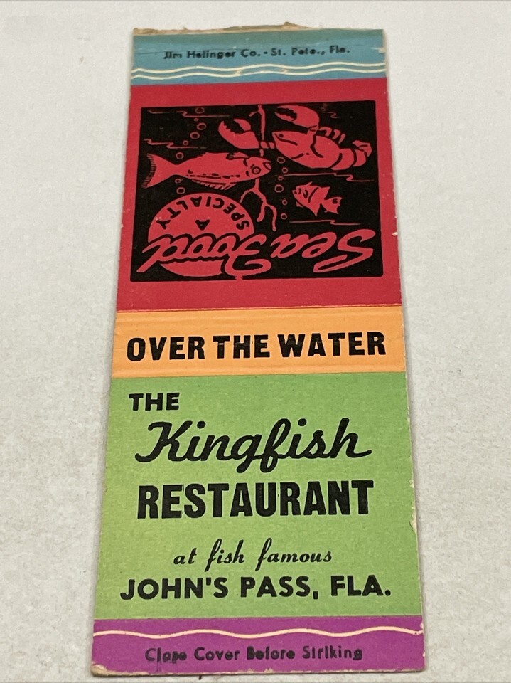 No Strike Matchbook Cover The Kingfish Restaurant John’s Pass, FL gmg