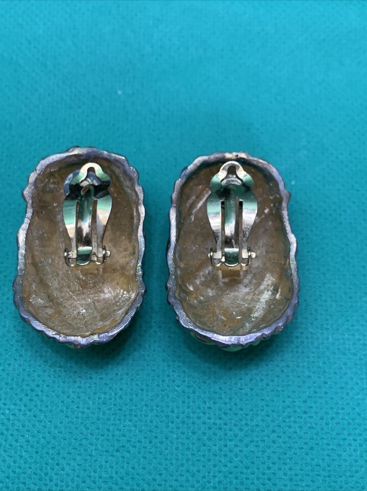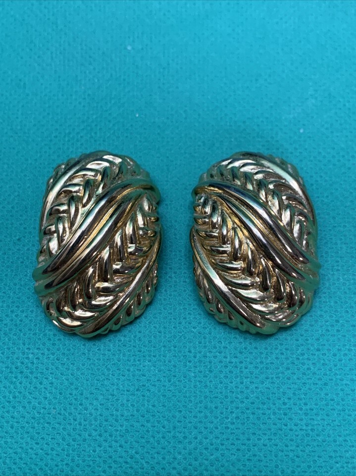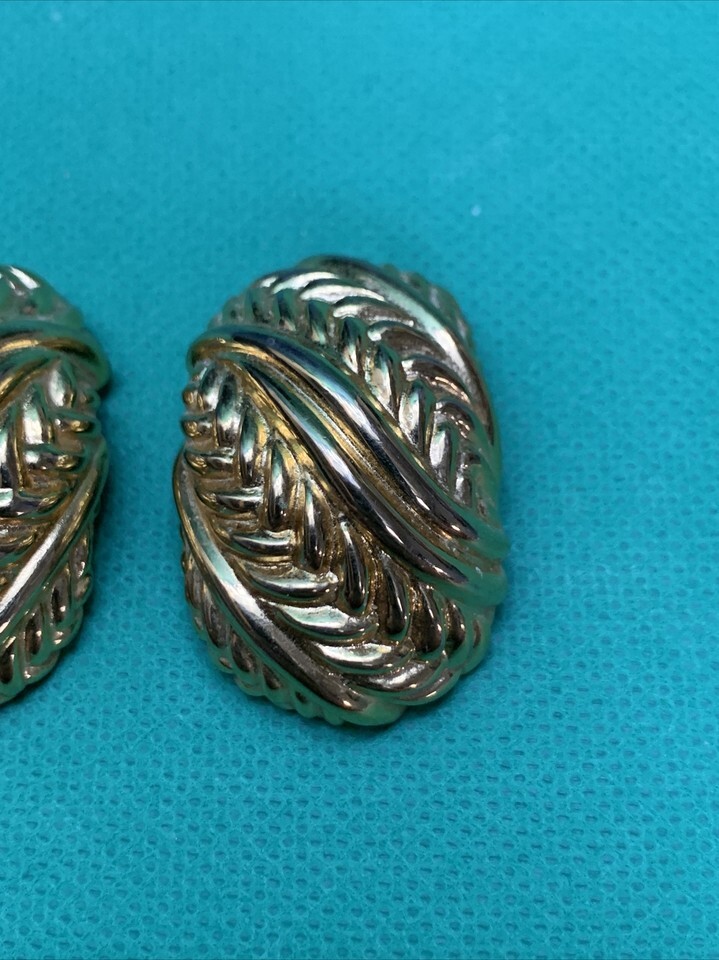Beautiful gold tone earrings. Clasps are in good condition. Please see pictures for details and measurements.