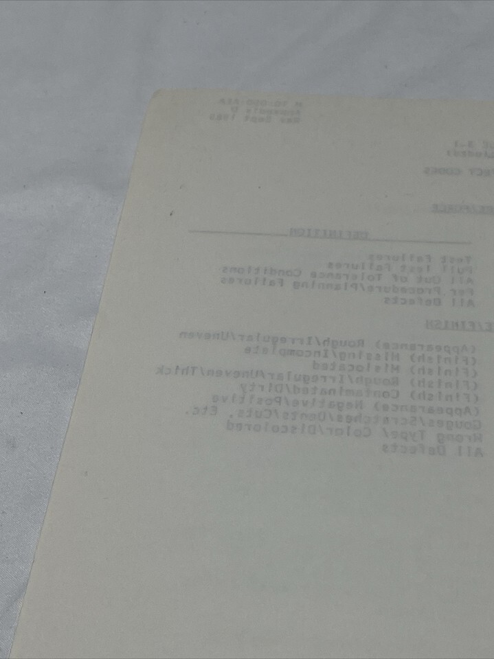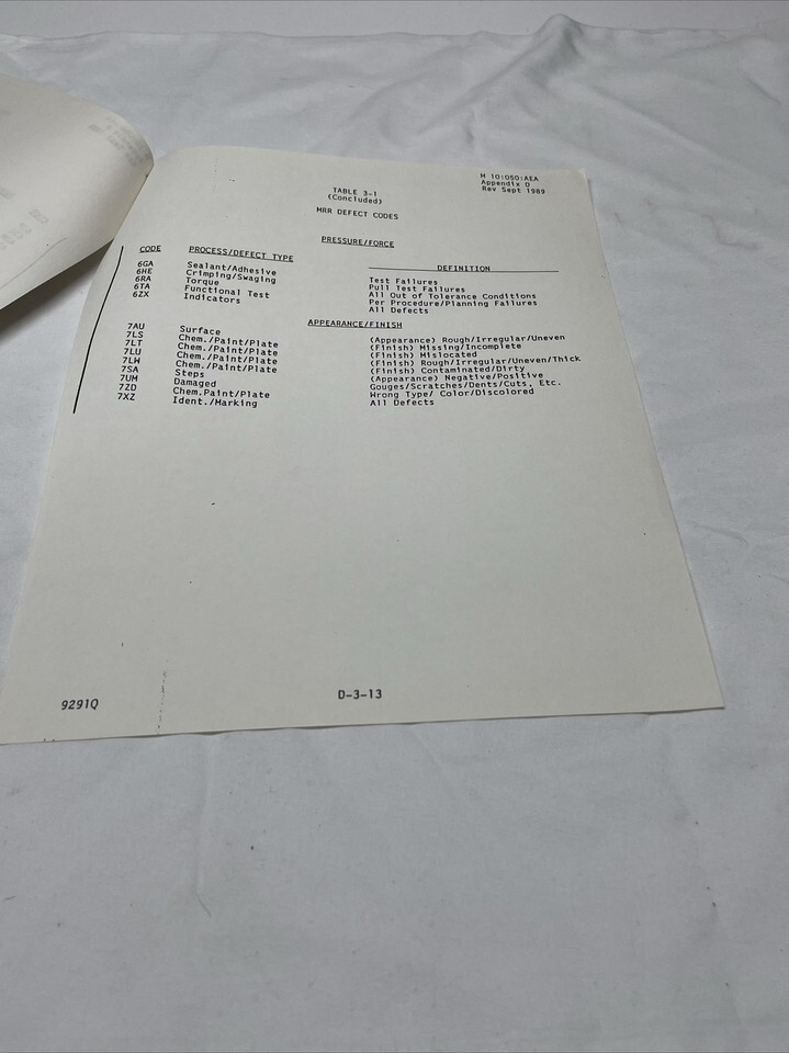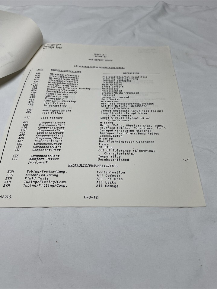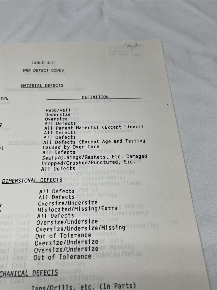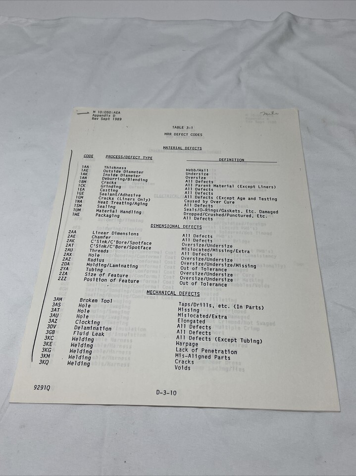 Vintage 1989 McDonnell Douglas MRR Defect Code Appendix D KG JD