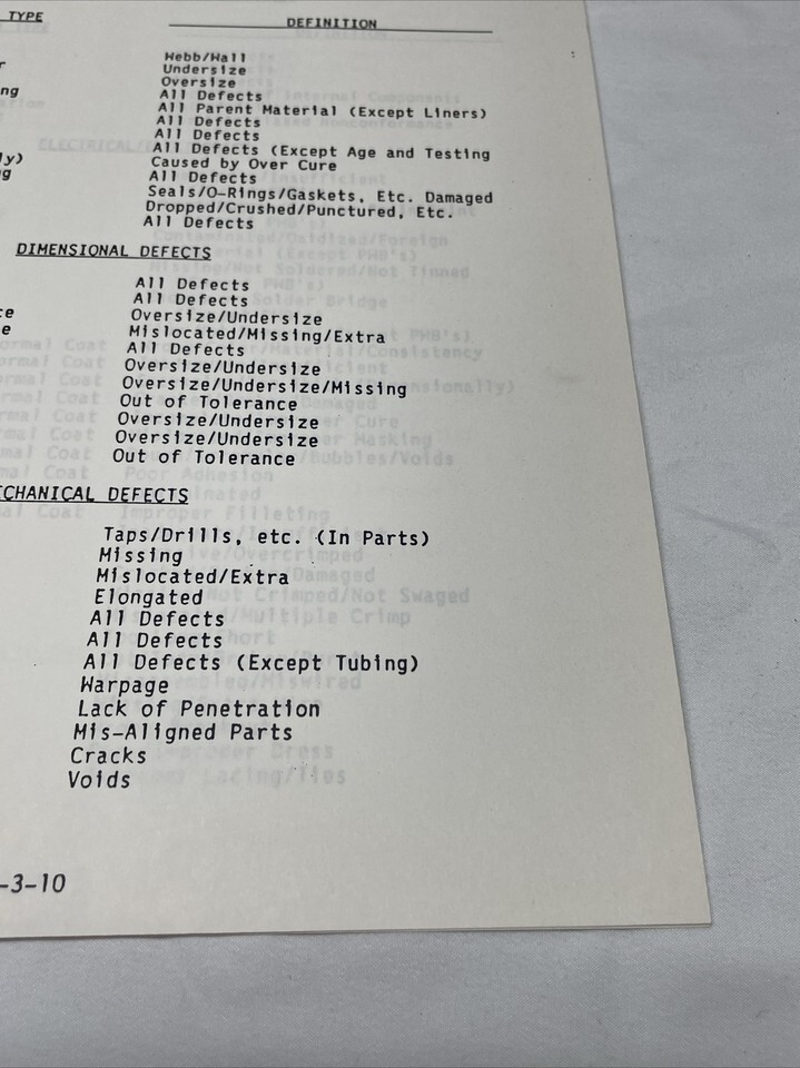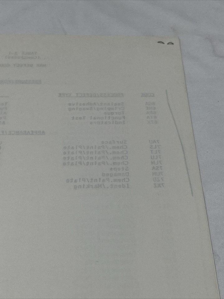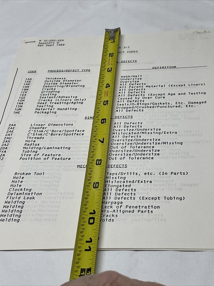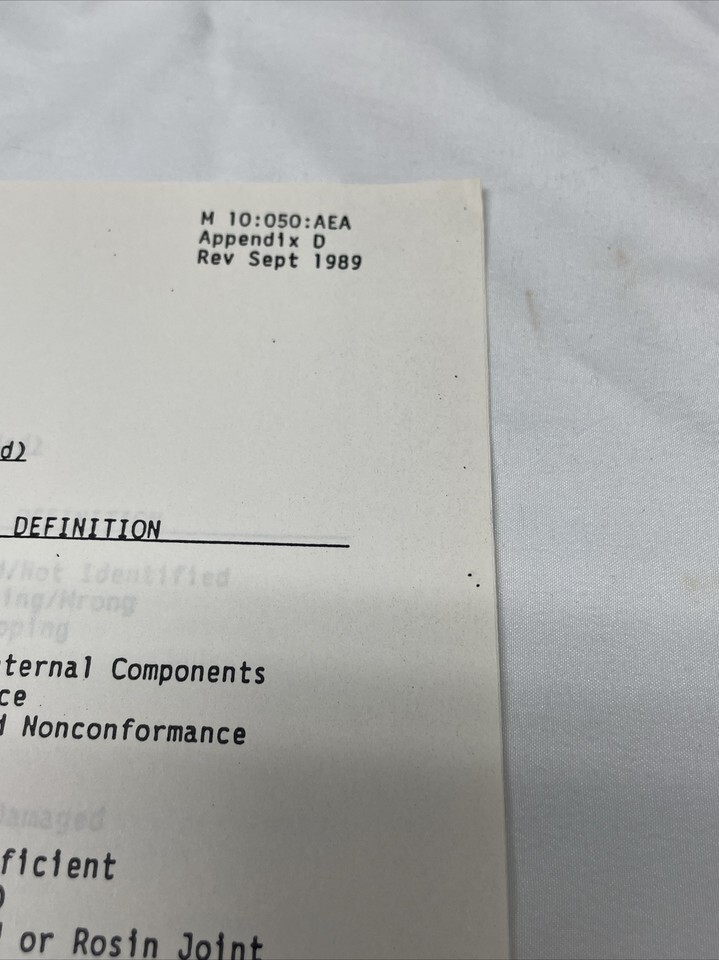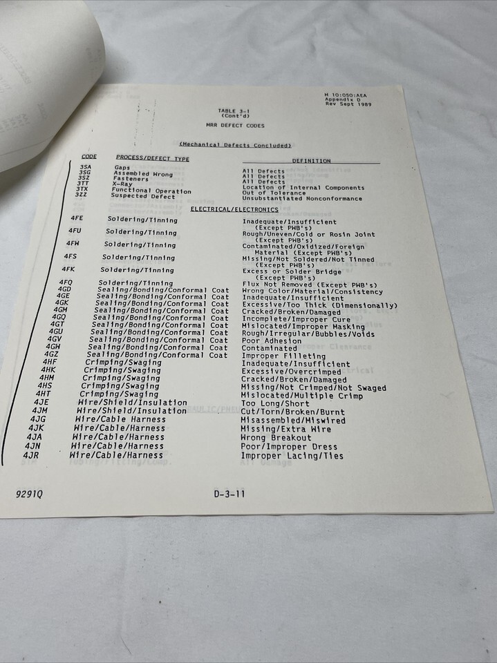 Vintage 1989 McDonnell Douglas MRR Defect Code Appendix D KG JD