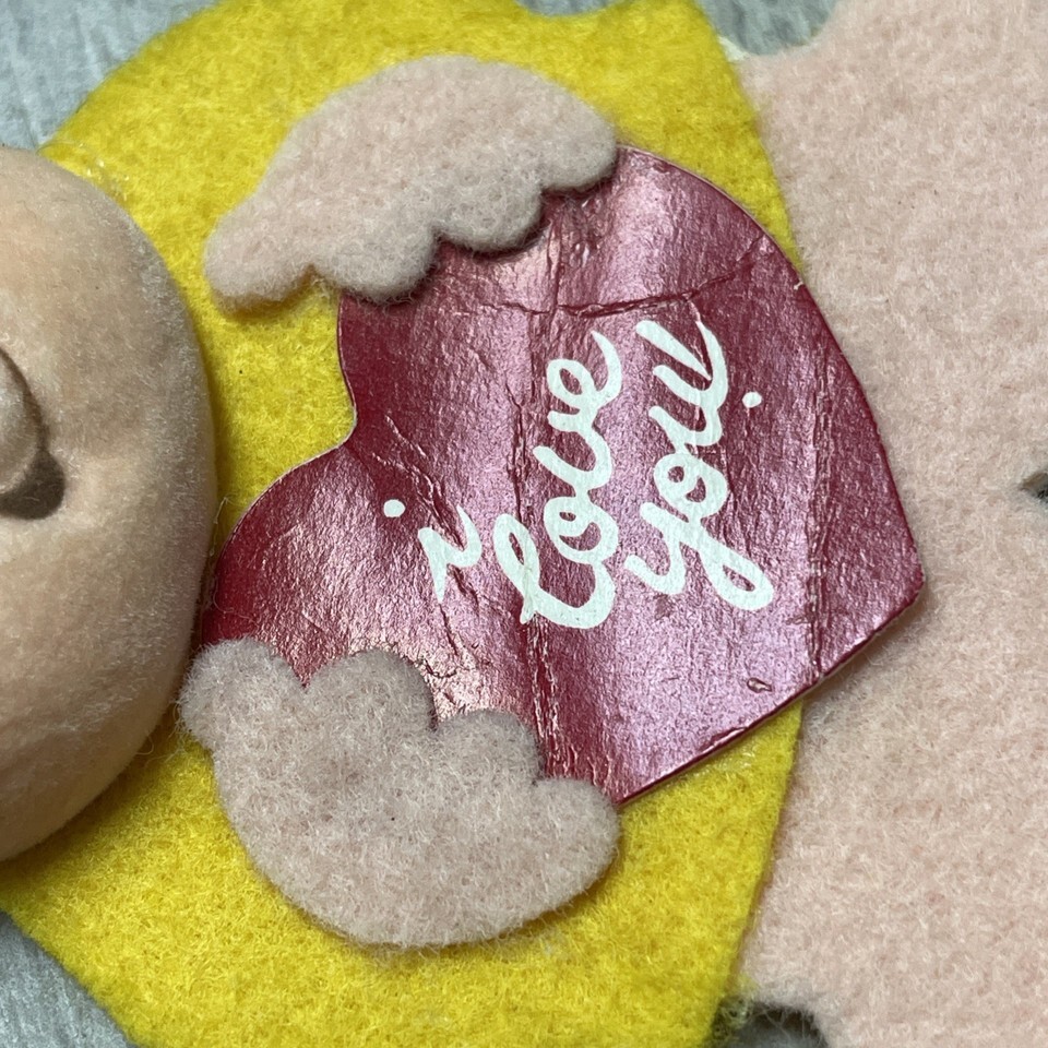 Pre owned, good condition for age. Head is made of foam. The body is felt. The heart is paper and has some bends. The nose has some marks and missing material. Back side is felt and has some residue but is not sticky. I could not find another one of these listed anywhere. May have been by American Greetings.