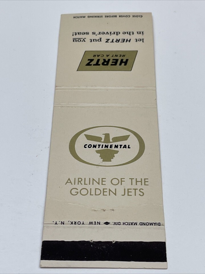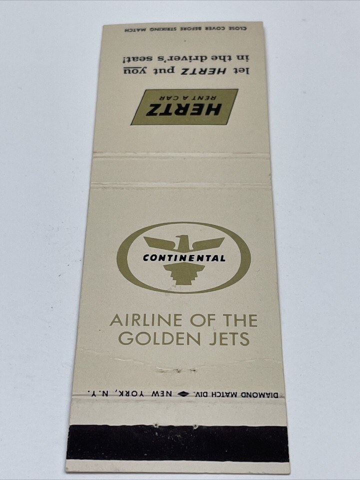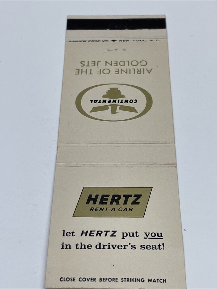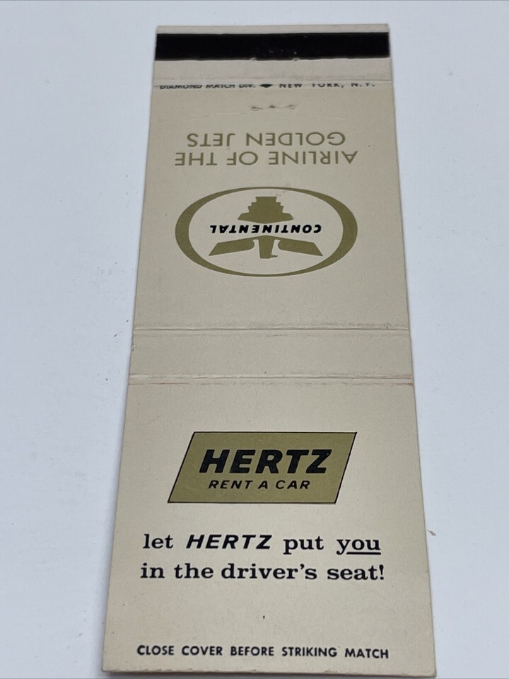 Matchbook Cover Continental Airline Of the Golden Jets Hertz Rent A Car gmg