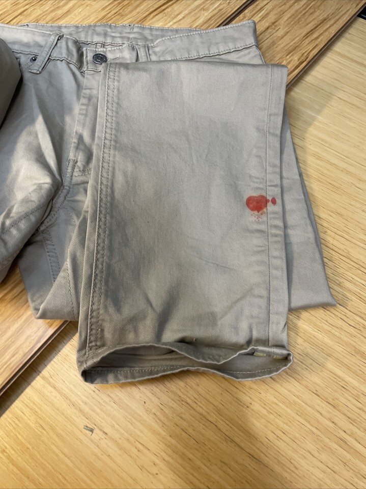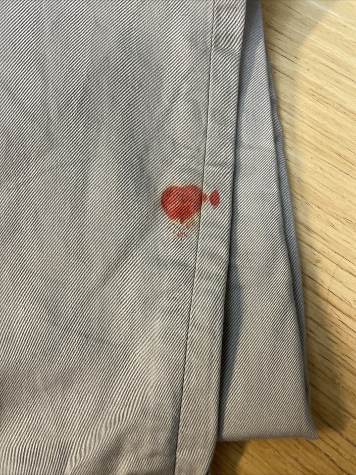 New with tags! Red stain on leg of pants. Please see pictures for details.