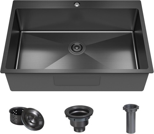 Top Mount Stainless Steel Double Basin Kitchen Sink 33" x 22" x 8" Deep