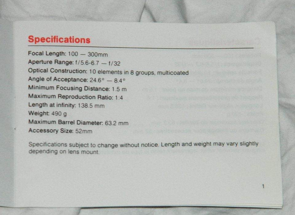 Listed is Lot 2 Sears and Vivitar Camera Lens Auto Zoom 60-300mm f/4.0-5.6. Lot includes 2 Instructional Manuals, 3 Filters and 2 Lens. Specifications on Sears is: Automatic Interchangeable Lens 60-300mm f4.0/5.6 Macro Zoom Lens. Vivitar is: 100-300mm f5.6-6.7.