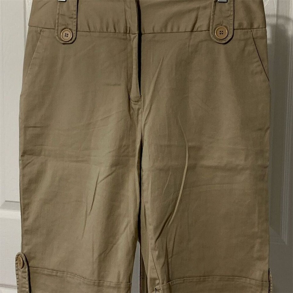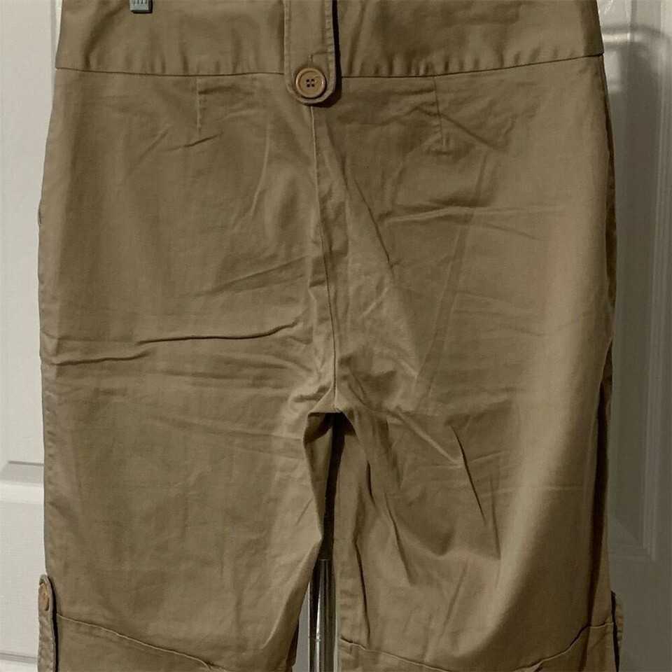 These Women D.F.A. New York shorts are size 12 and come in a solid beige color. Made from a blend of cotton twill and Spandex, they offer comfort and a slight stretch. Features include a zip fly, and belt loops. Designed for casual summer wear, they have a 12-inch inseam and are machine washable. Manufactured in Sri Lanka, these shorts are pre-owned.