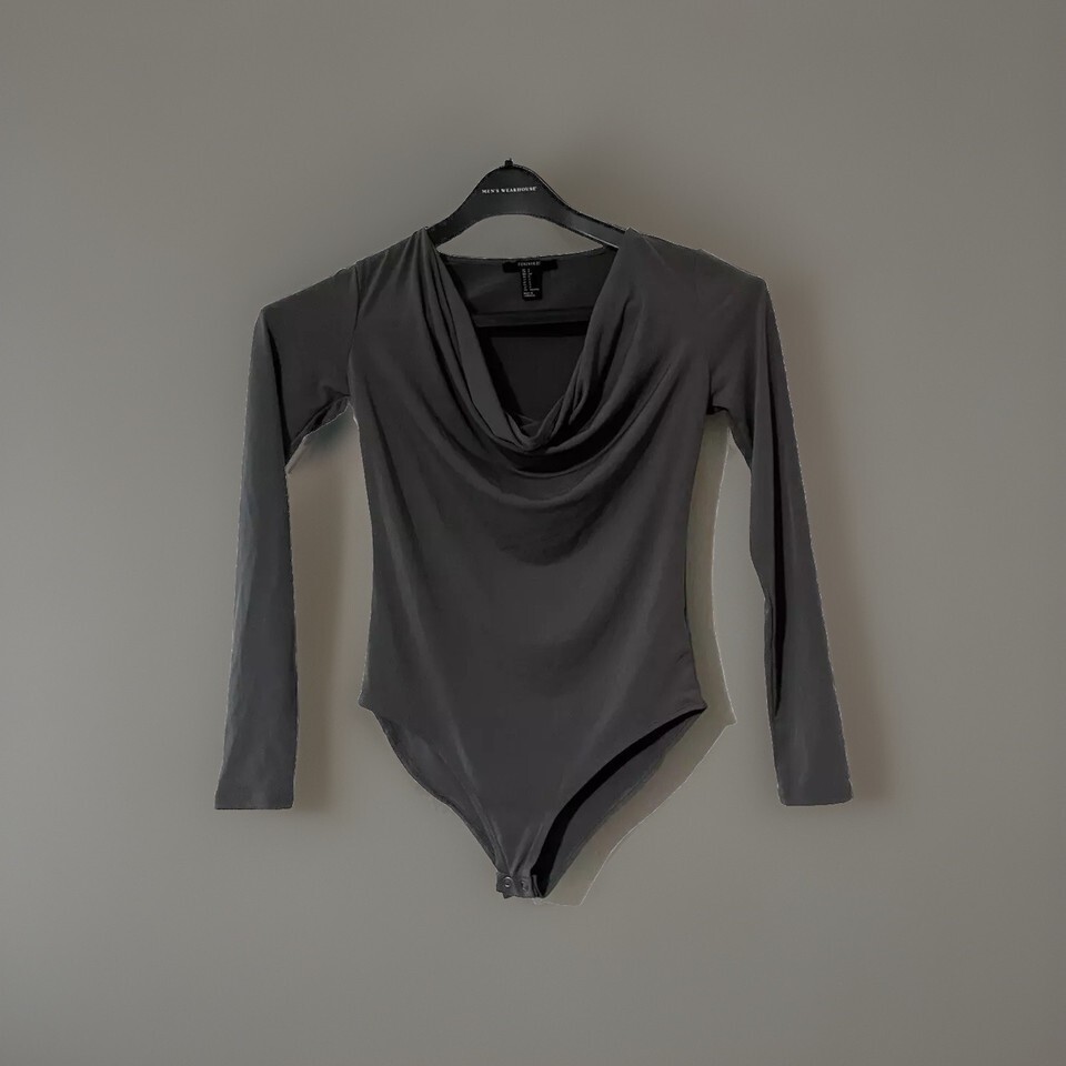 The Forever 21 Body Suit is a stylish and versatile piece perfect for casual occasions. Made from stretchy spandex material, this long sleeve bodysuit in a solid gray color offers a comfortable fit in size S. The bodysuit features a one-piece design with a regular size type and is designed specifically for women. With its sleek style and quality brand, the Forever 21 Body Suit is a must-have addition to any wardrobe for those looking for a fashionable and practical top.