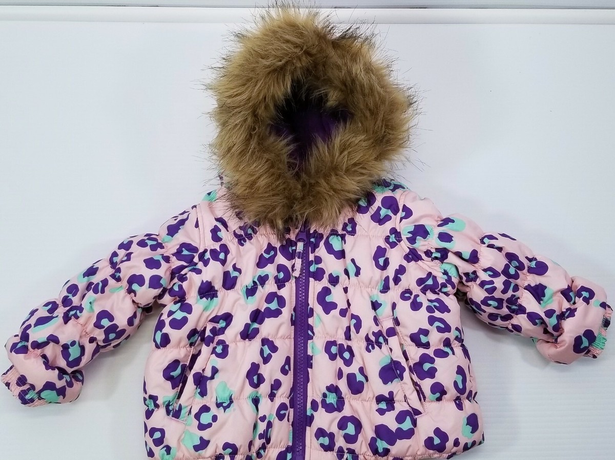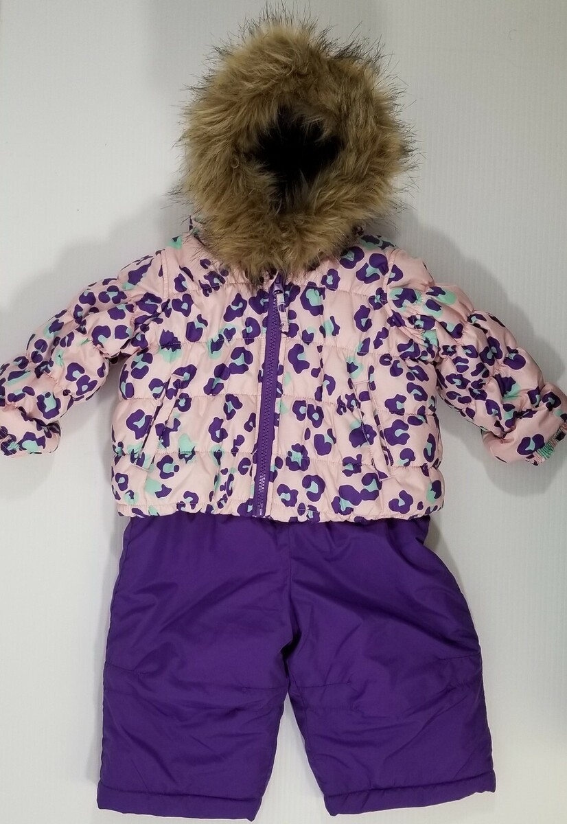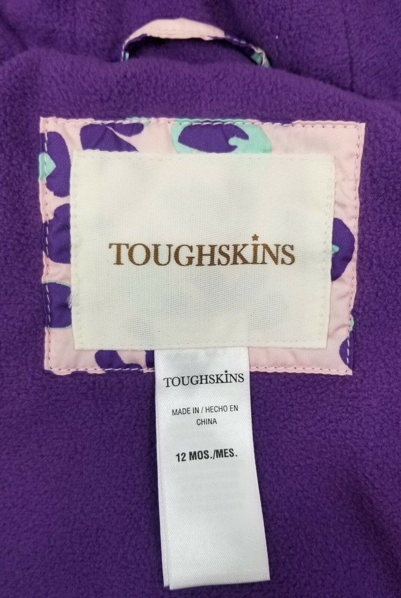 I) Infant Toughskins Waterproof Snow Jacket Bib Snow Pants Purple Leopard 12M
