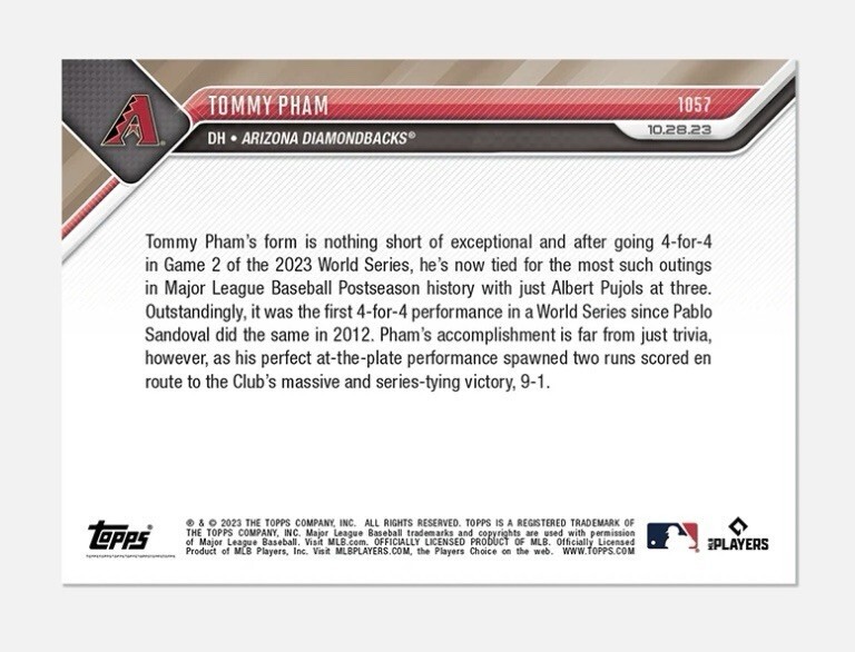 Tommy Pham Most Postseason 4 Hit GMs 2023 MLB TOPPS NOW World Series 1057