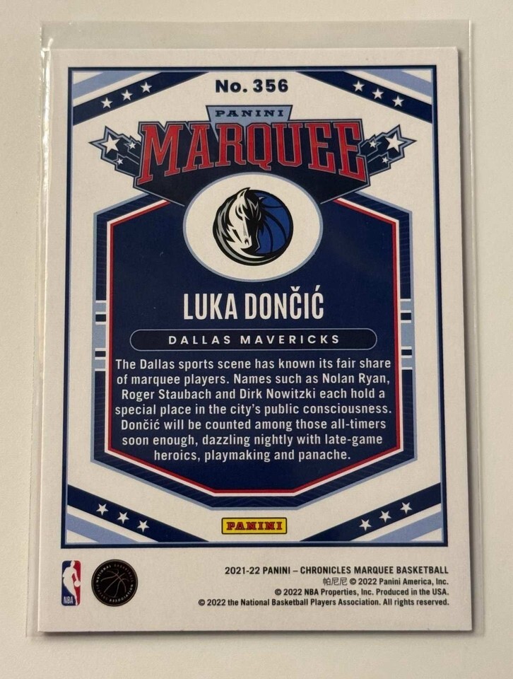This Stunning Luka Doncic REFRACTOR Card is a must Have! This 2021-22 Panini Chronicles Marquee #356 card has a Brilliant shine, crisp corners and strong eye appeal! A must-have for any NBA Mavericks/Lakers or Luka collector.