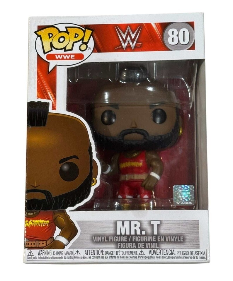 Funko Pop WWE Mr. T #80 featuring iconic red attire and beard sculpt. Classic wrestling and pop-culture crossover piece with enduring collector appeal.