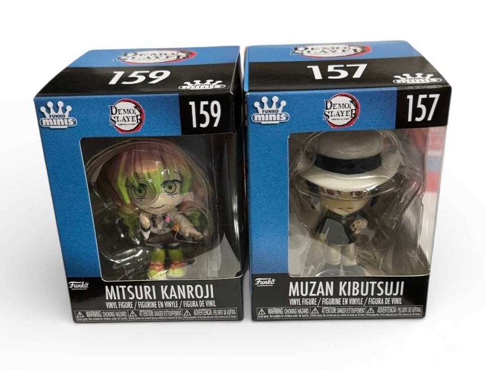 Stunning full collection of Funko Minis Demon Slayer Anime figures Nos 152 through 159 freshly unpacked and in beautiful display ready condition. Amazing character detail and minimal shelf wear make this complete lineup ideal for collectors who want every figure in one purchase including Tanjiro Nezuko Zenitsu Inosuke Muzan Giyu and Mitsuri.