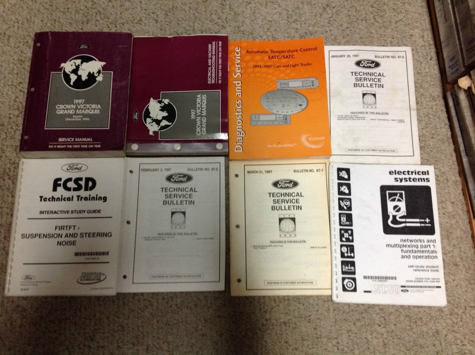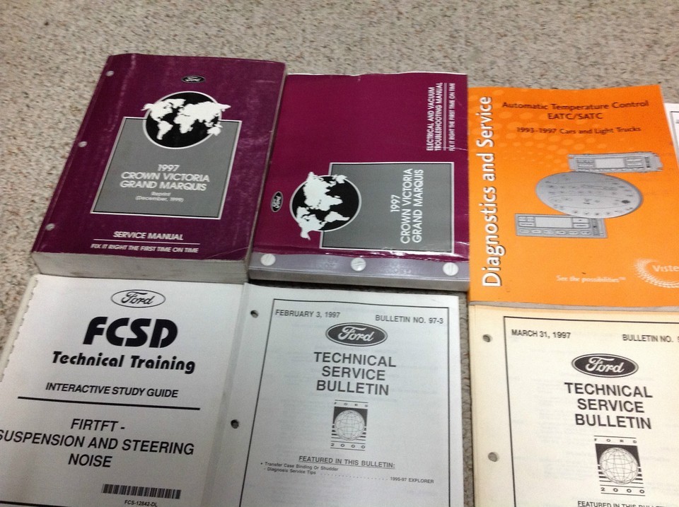 Factory 1997 Ford Crown Victoria/Mercury Grand Marquis Service Manual, Electrical Vacuum Troubleshooting Manual, Automatic Temperature Control Manual, Technical Service Bulletins Manual, New Model Training Manual