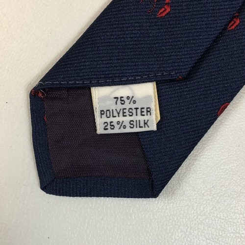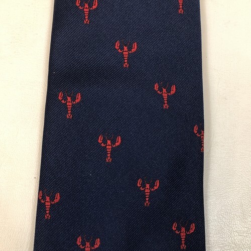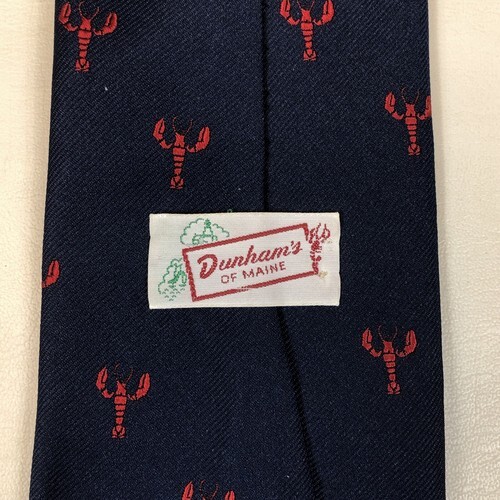 Vintage Dunhams of Maine Embroidered Lobster Navy Blue Necktie Tie Made in USA