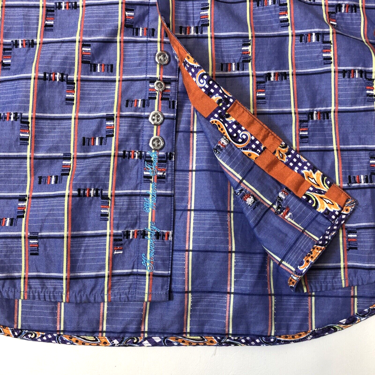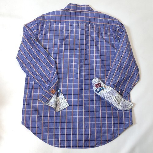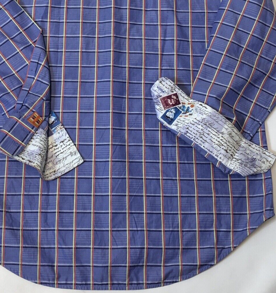 Robert Graham Even Keel Classic Fit Flip Cuff Blue Grid Pattern Cotton Size XL