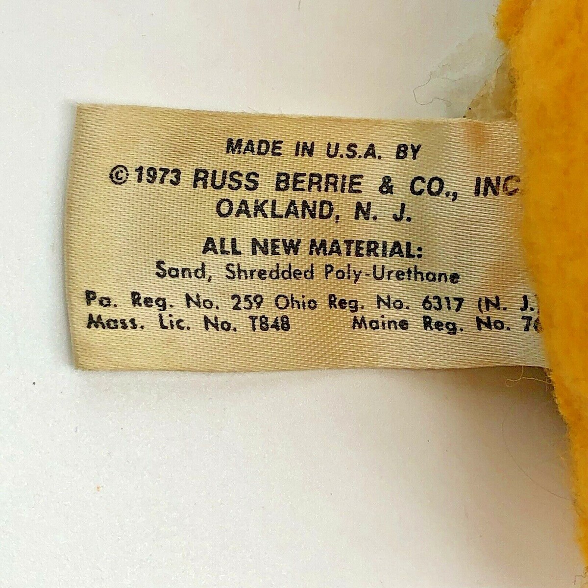 Vintage Russ Berrie Tummy Striped Tiger Plush Bean Bag Bottom 1973 Made in USA