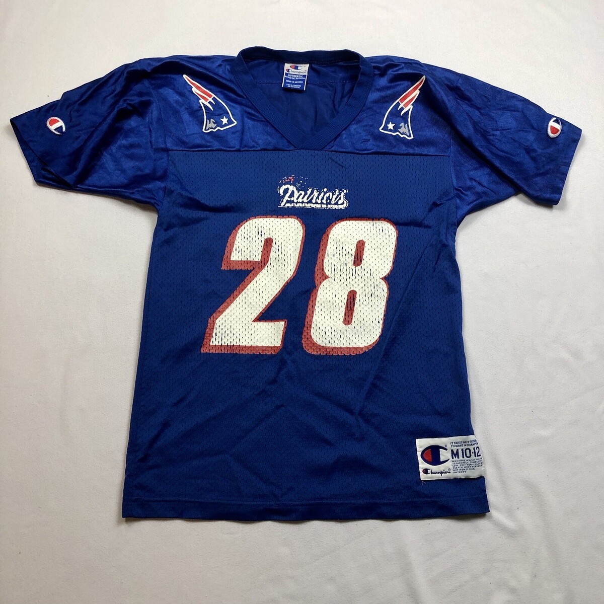 Curtis Martin Blue #28 New England Patriots Champion Jersey Youth Kids Medium