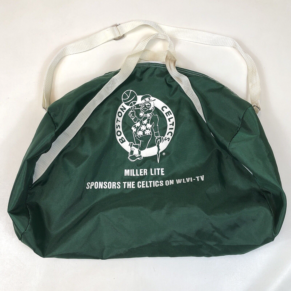 Vintage Boston Celtics Lite Beer WLVI 56 Promo Small Zip Green Duffel Bag Strap