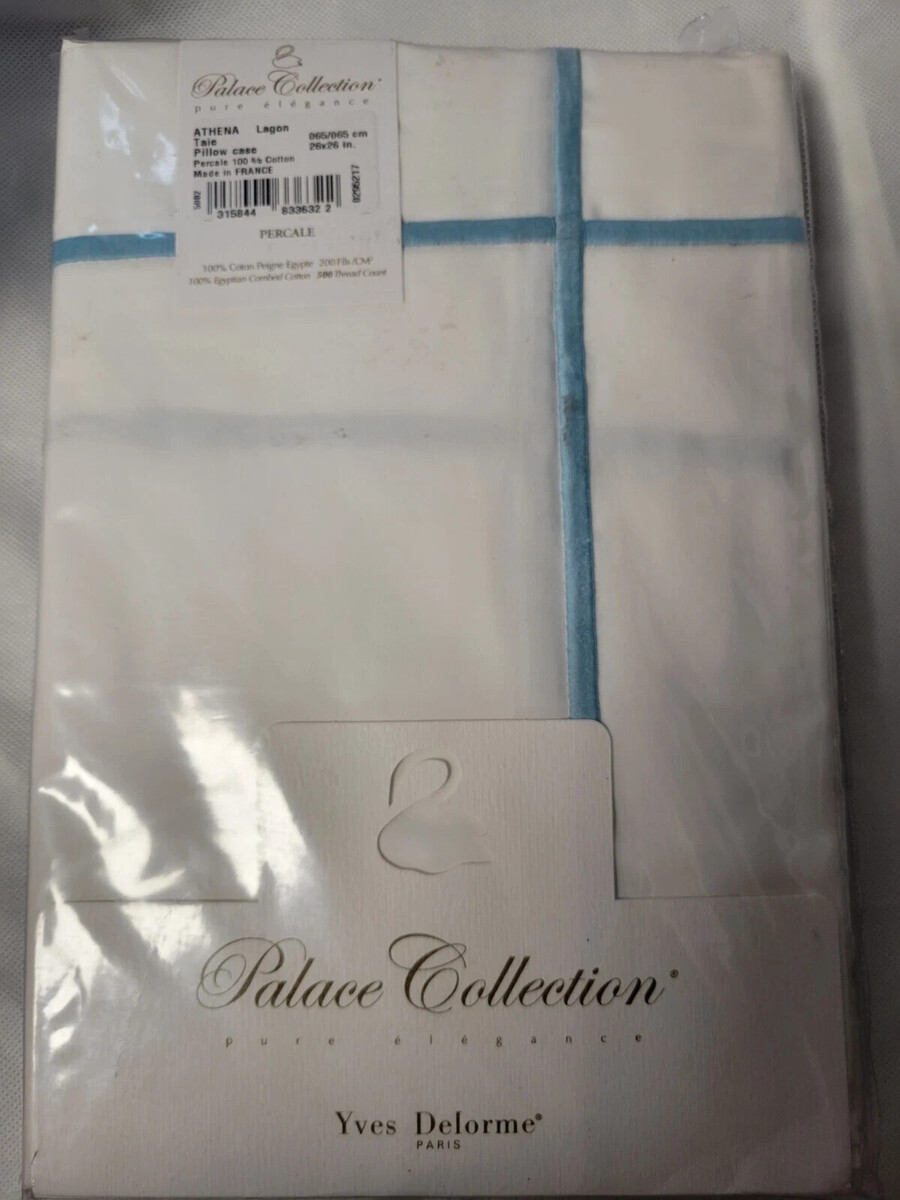 Yves Delorme Athena White Queen Duvet Set 3PC Aqua Stripe Percale 500TC NEW