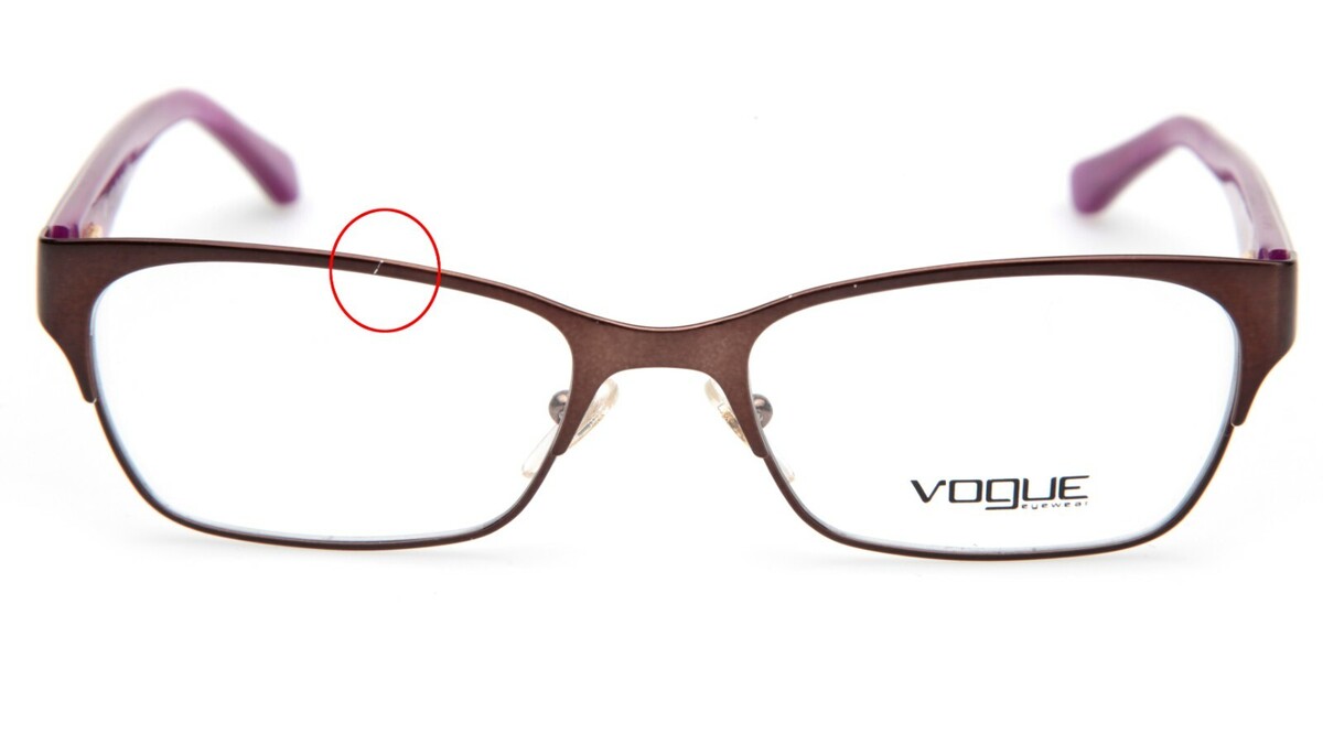 NOTES: Used eyeglasses frame. The paint on the top of the frame is slightly erased and therefore the price is greatly reduced. Please look the photos.