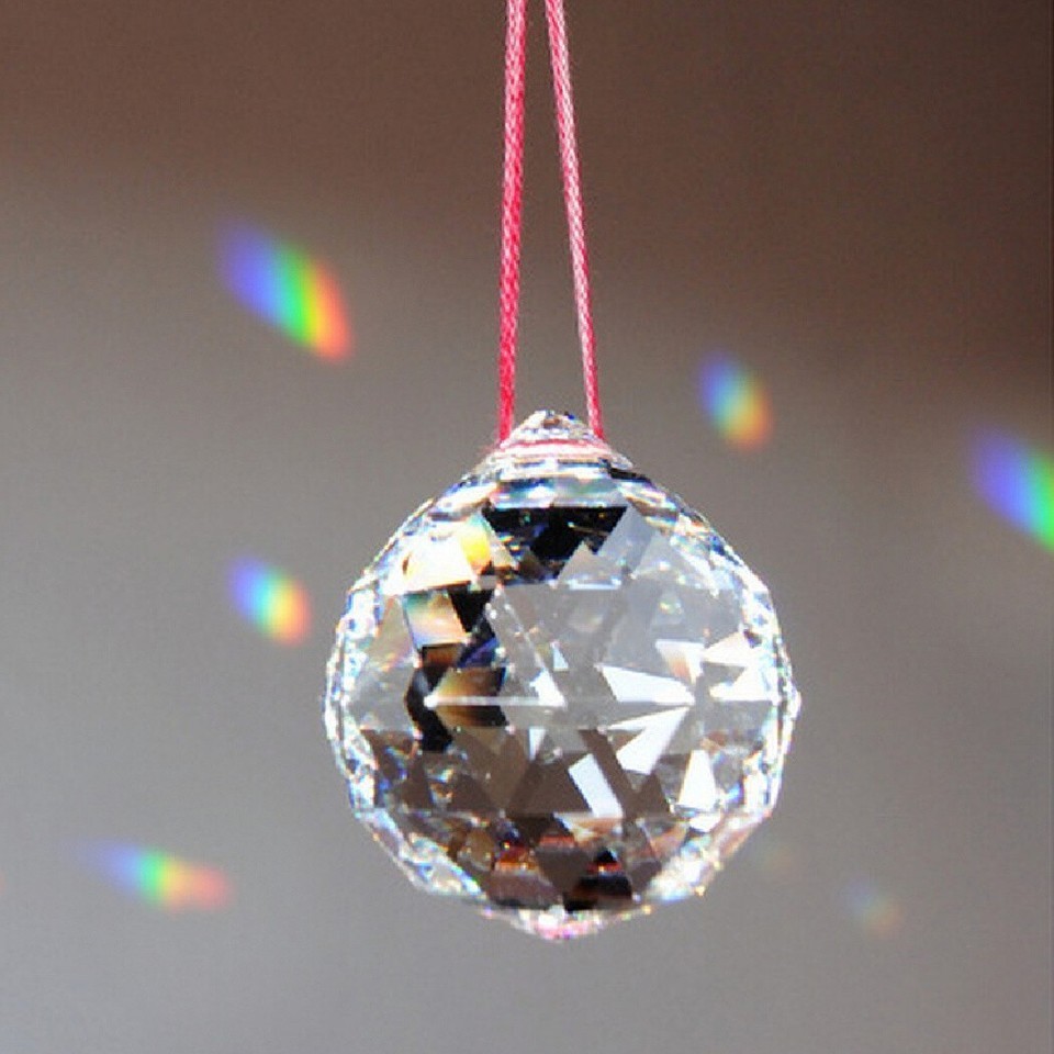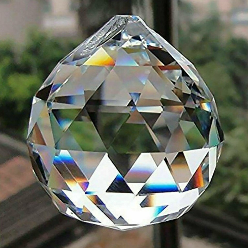 FENG SHUI HANGING CRYSTAL BALL Clear Faceted Sphere Sun Catcher Rainbow Prism...