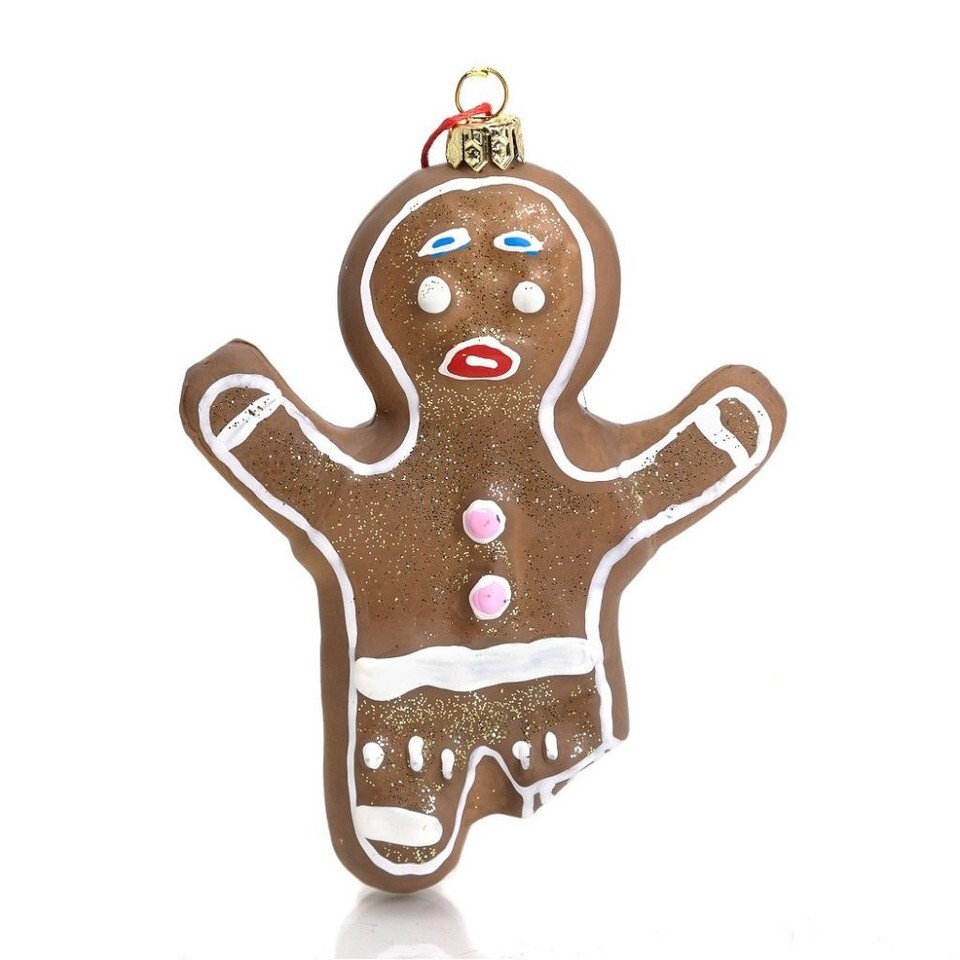POOR GINGERBREAD MAN CHRISTMAS TREE ORNAMENT 4.5" Glass Funny Bitten Bite Cookie