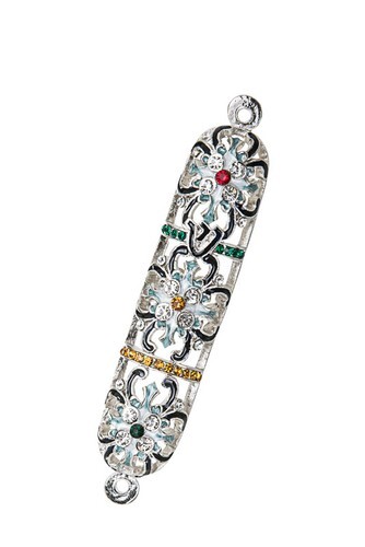 EYE-CATCHING JUDAICA: The mezuzah is a container which houses a parchment inscribed with religious texts. According to Jewish tradition the reward for affixing a Mezuzah upon the doorstep is long life. "Scroll not included"ยท HAND PAINTED QUALITY: This piece is crafted from hand painted pewter. Each one is kiln fired to ensure the enamels long lasting quality. Then embellish each one with gold accents and handset Crystals. Dimensions: 4" X 0.7?