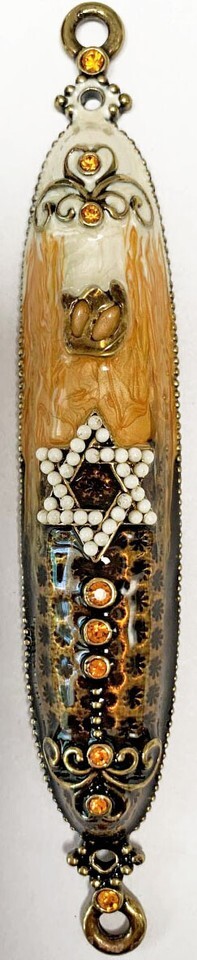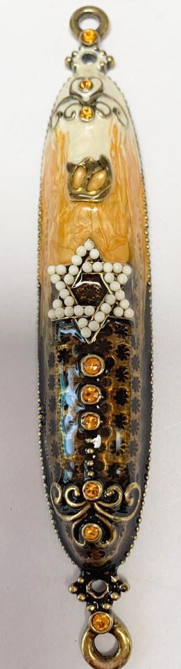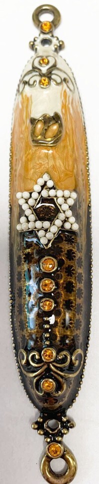 NEW JUUDAICA JEWELED MEZUZAH BLACK YELLOW AND CREAM 4"