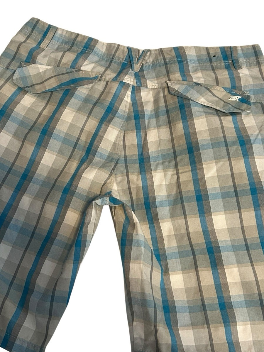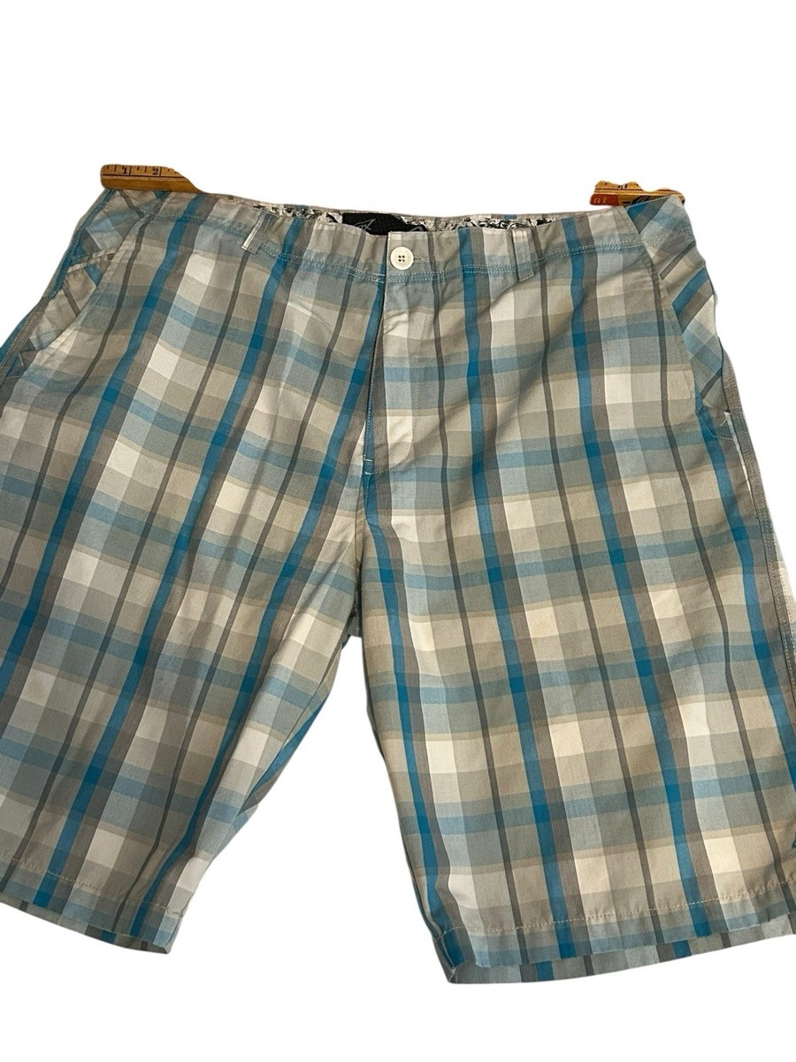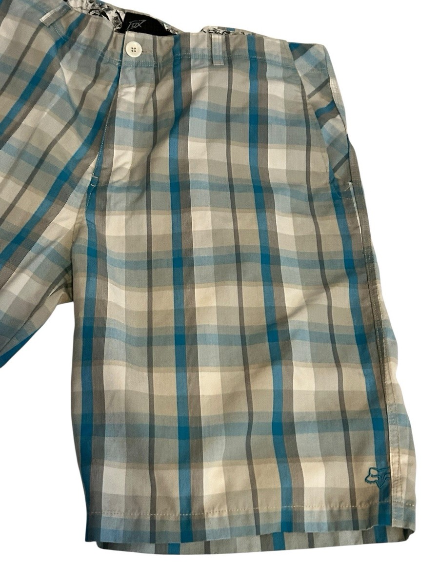 Fox Mens 38 Plaid Shorts w/Pockets 9" Inseam Chino Blue Gray Wht Lightweight Y2K