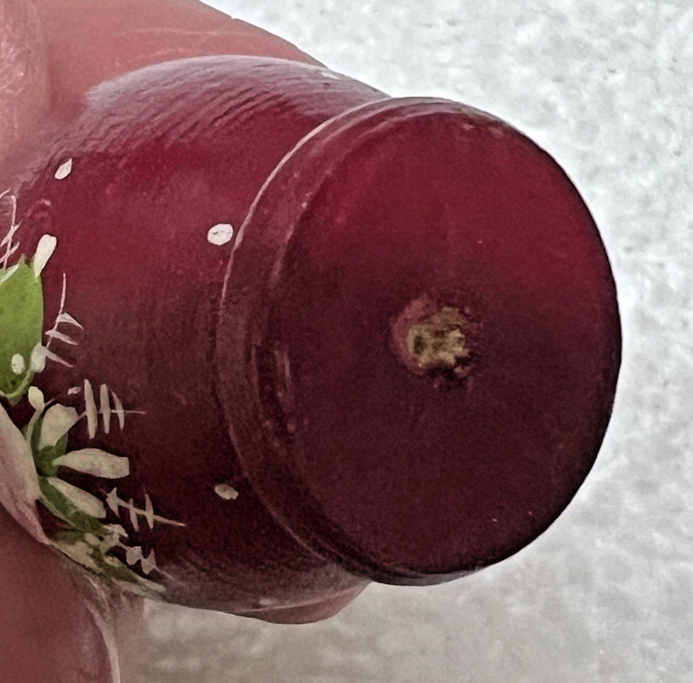 Vintage Hand Painted Russian Doll Just 1 5/8 Inches Red Pink Flower so tiny no it won't open it's a solid piece