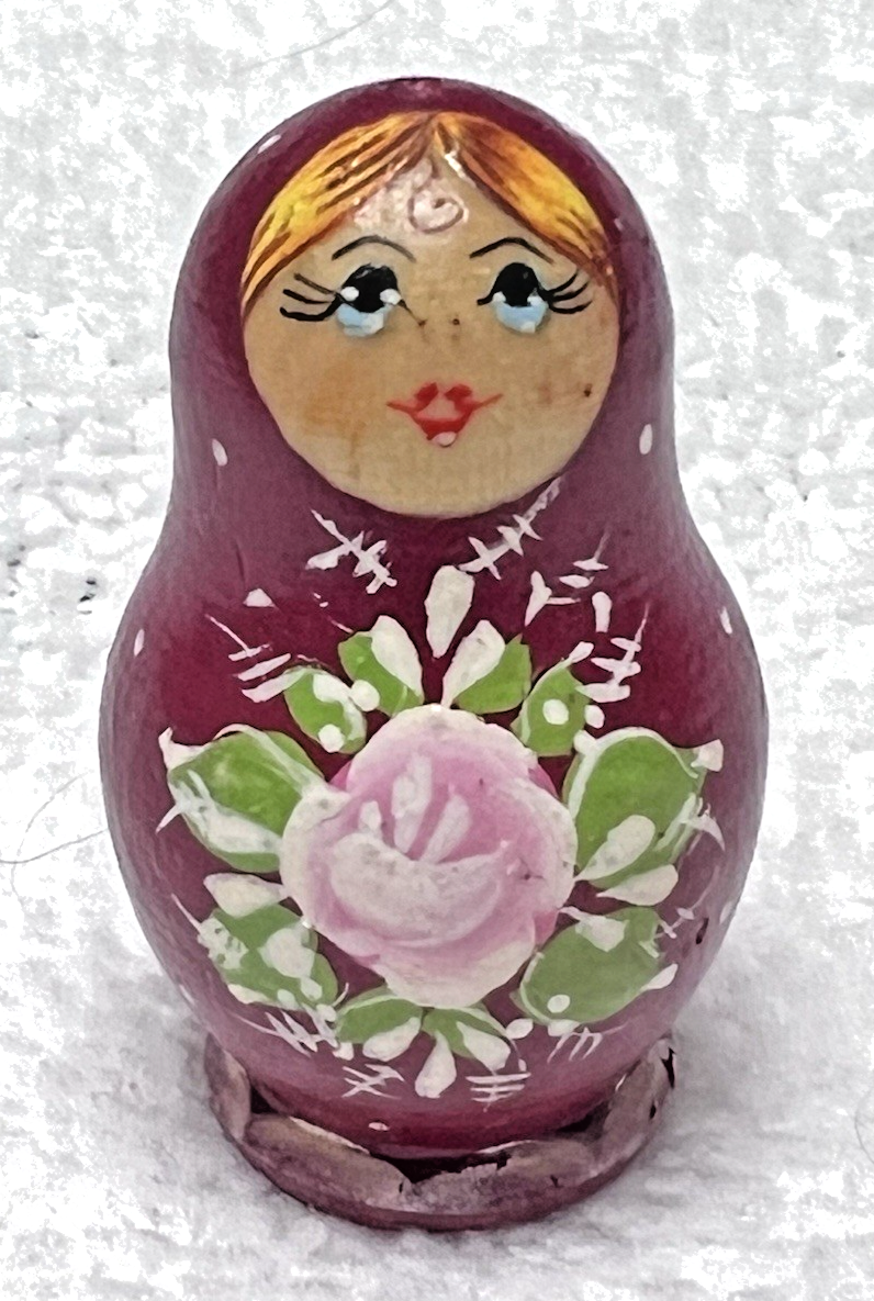 Vintage Hand Painted Russian Doll Just 1 5/8 Inches Red Pink Flower