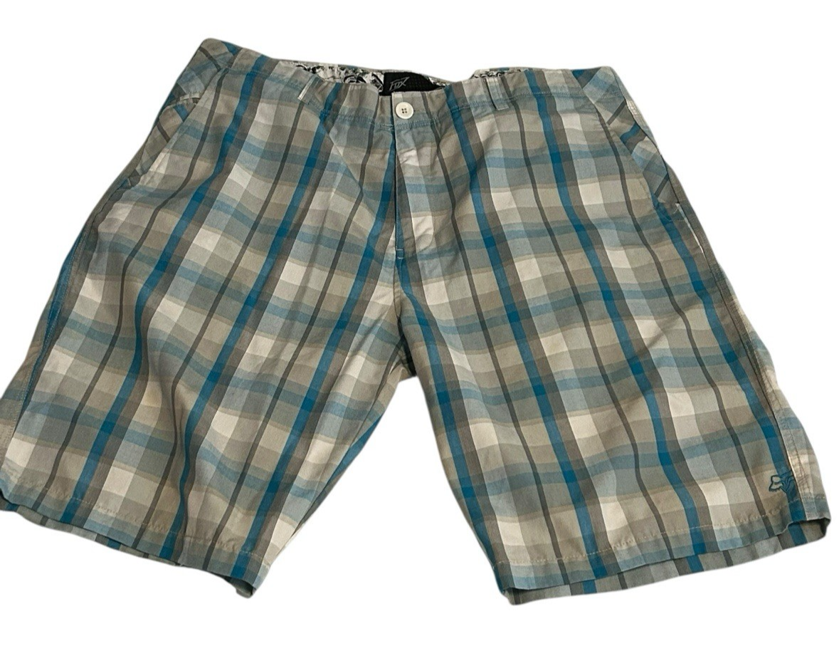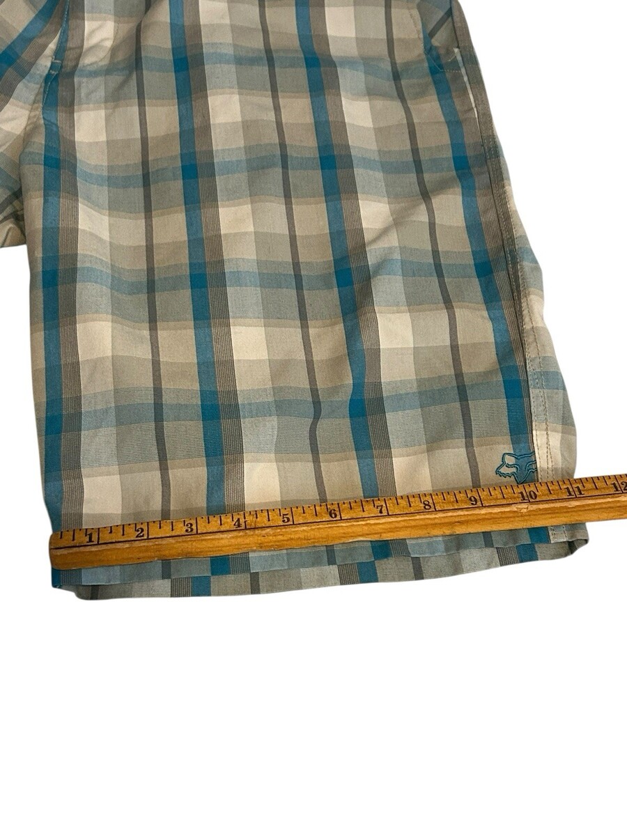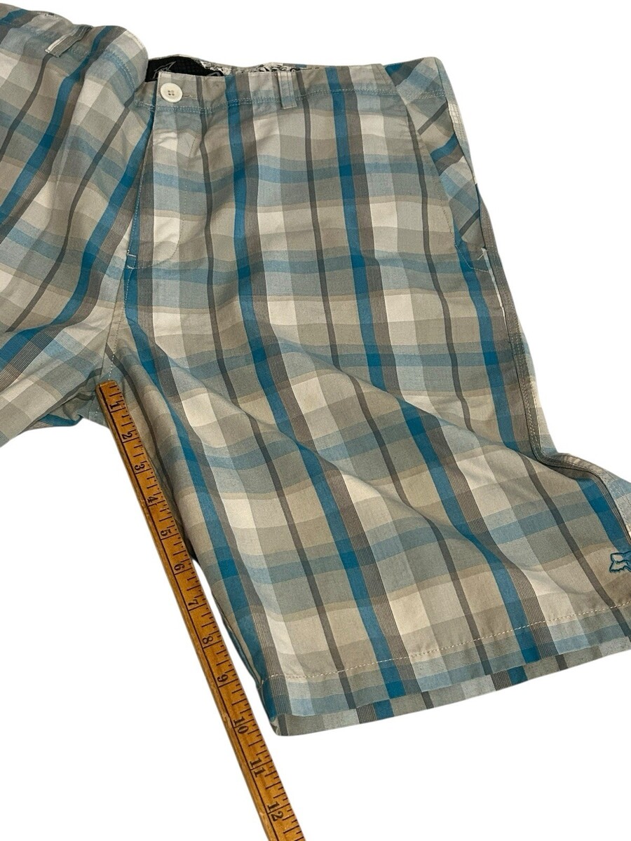 Fox Mens 38 Plaid Shorts w/Pockets 9" Inseam Chino Blue Gray Wht Lightweight Y2K