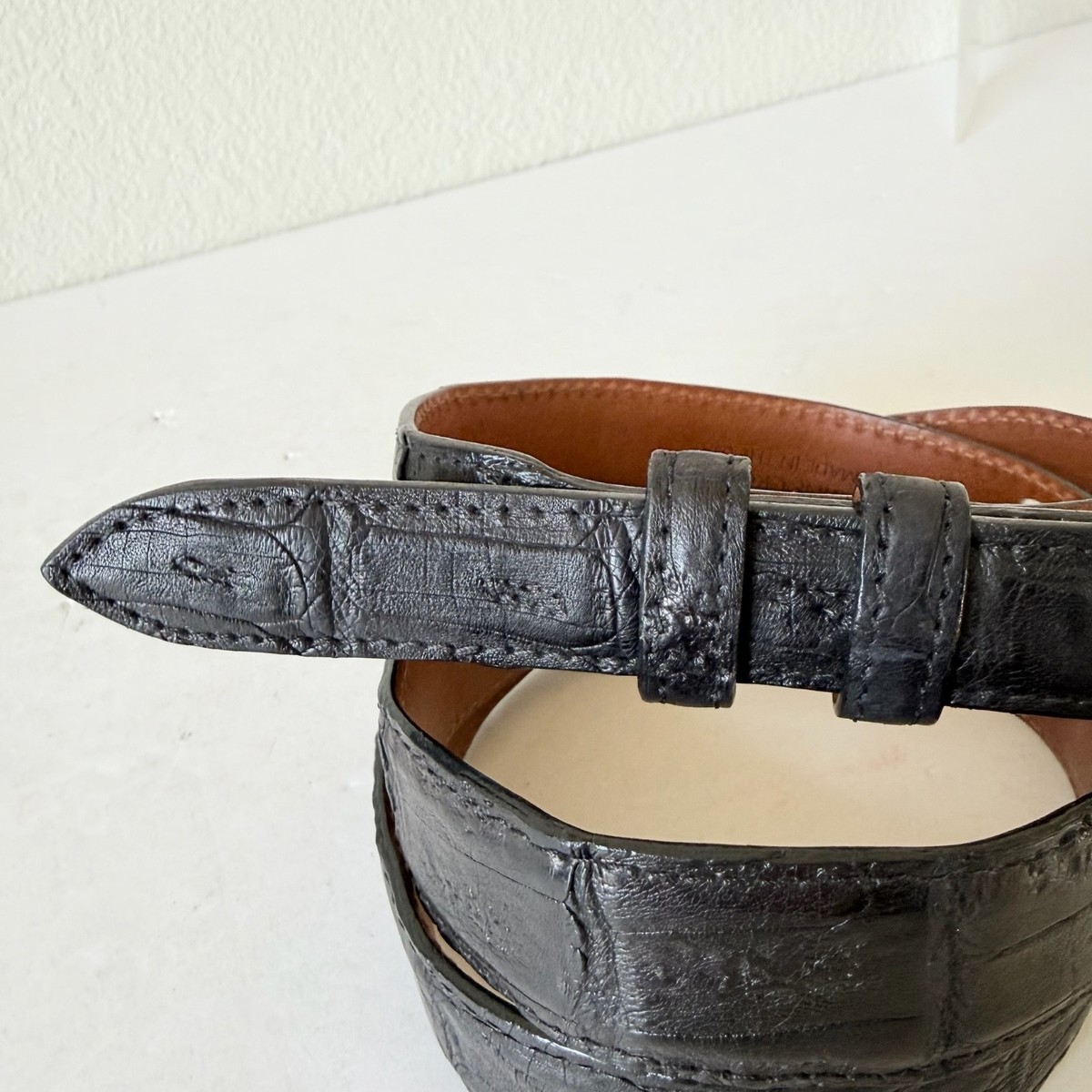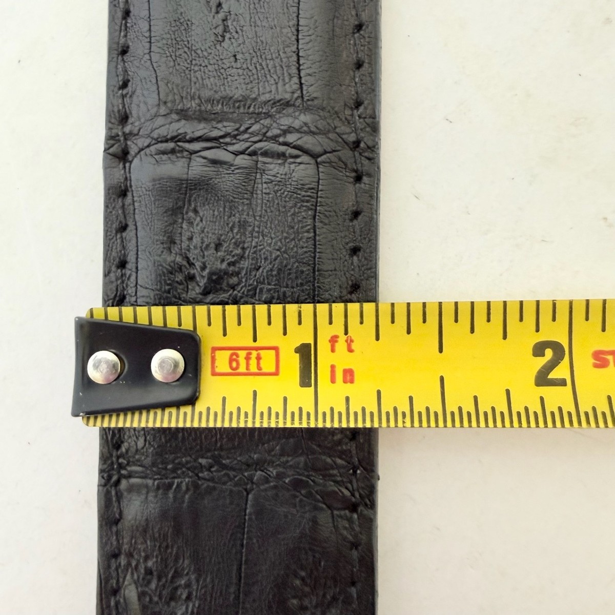 These are Rod Patrick Bootmakers Mens Belts in Black Caiman Leather that is 1.5" wide with a Taper. This is made in Mexico of Genuine Alligator Leather.
