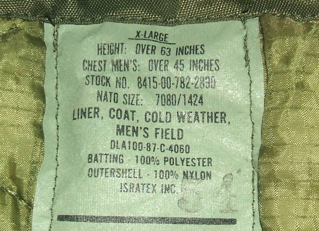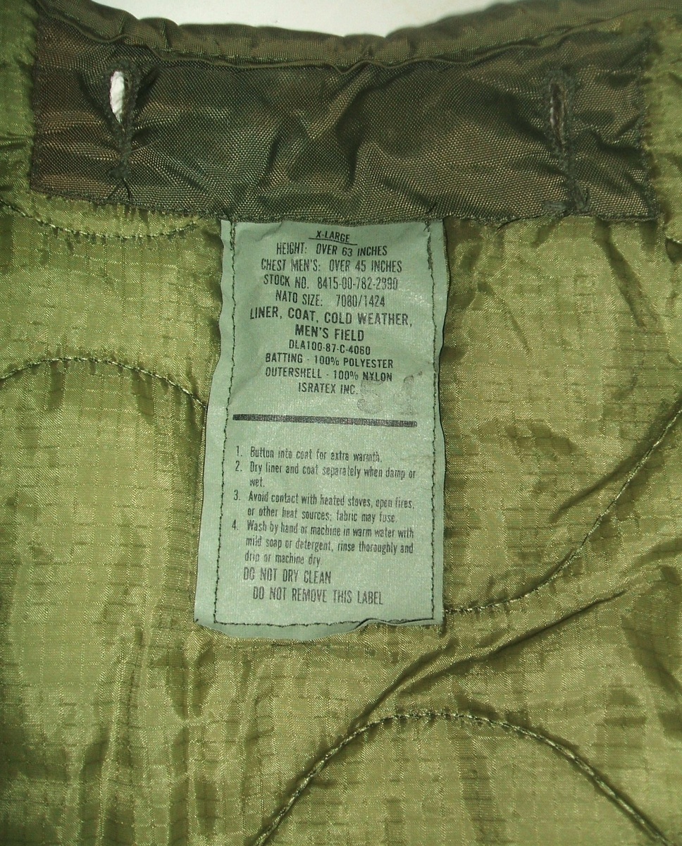 US Army M-65 field JACKET liner, X-Lg Reg, Isratex 1987 UNISSUED w buttons