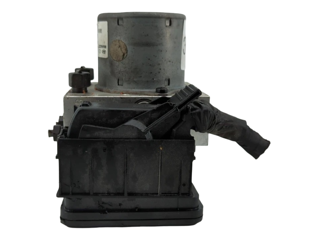 This OEM ABS pump control module fits 2013 Hyundai Veloster Hatch models and carries part number 589202V450. It is designed to control the anti-lock braking system (ABS) and ensure proper operation. The module is in good used condition with normal wear from use, showing no cracks, broken connectors, or damage, and all mounting points are intact. This is a direct replacement OEM part and will be sent with proper tracking.