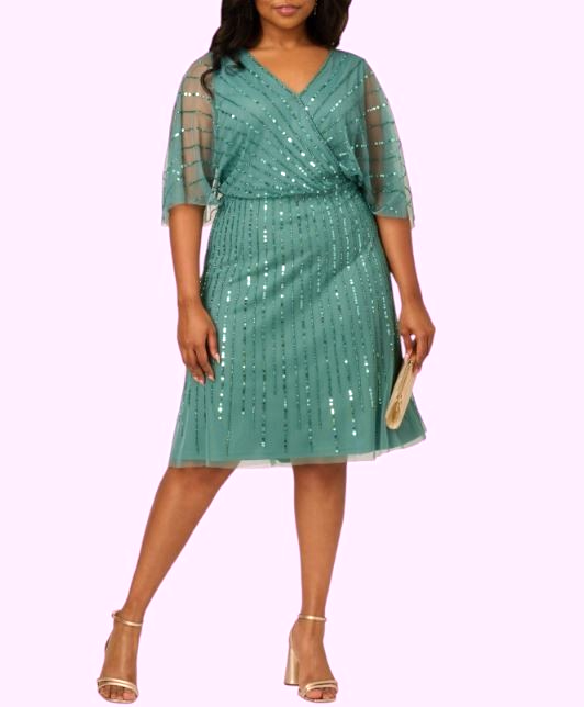 Adrianna Papell Plus Size Surplice-Neck Beaded Short Dress 22W - Greenslate $169