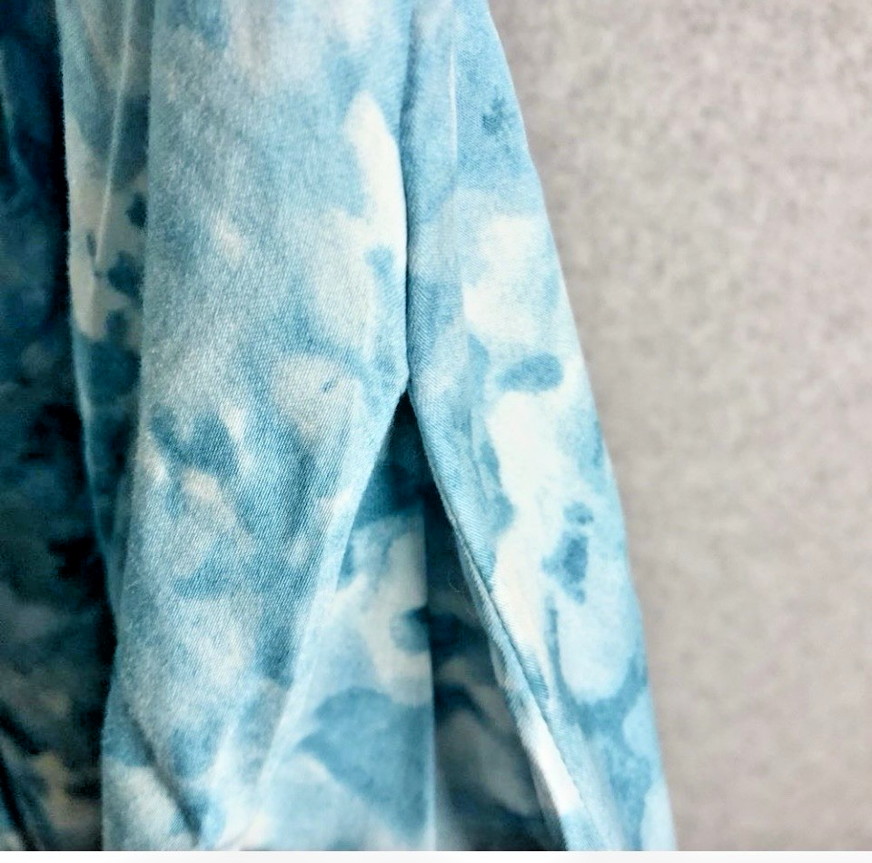 This Talbots Abstract Floral Print Shirt Dress in size 14P is a versatile and stylish addition to any wardrobe. With a floral pattern in shades of blue, this knee-length dress features a collared neckline, sleeveless design, and hidden button closure, 2 seam pockets. Underarm to underarm is 18". Perfect for a variety of occasions including travel, weddings, parties, or casual outings, this dress is made from comfortable cotton material and has a fit flare style that is flattering for all body types. The classic style dress with belted waist adds a trendy touch to the dress, making it a stand-out piece for the summer, fall, or spring seasons.