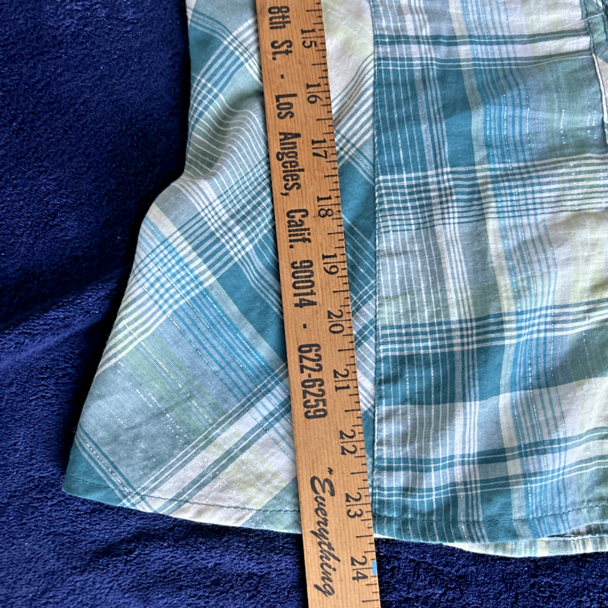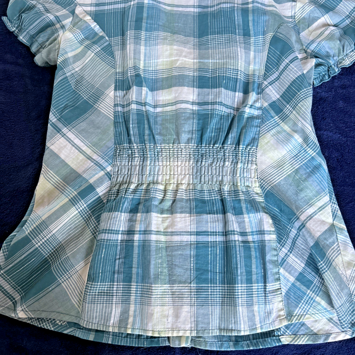 GRASS JEANS Short Sleeve Green Plaid Top with Ruffled Collar, Size M - NEW!