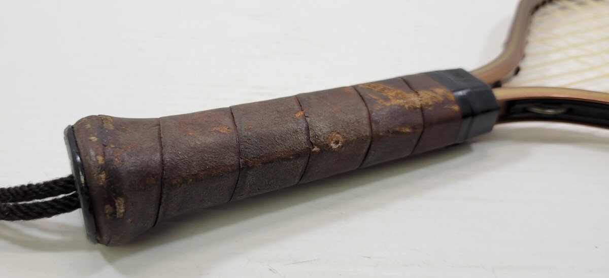 Racquet is in vintage used condition with some signs of use and age including a tear in the cover and worn hand grip.