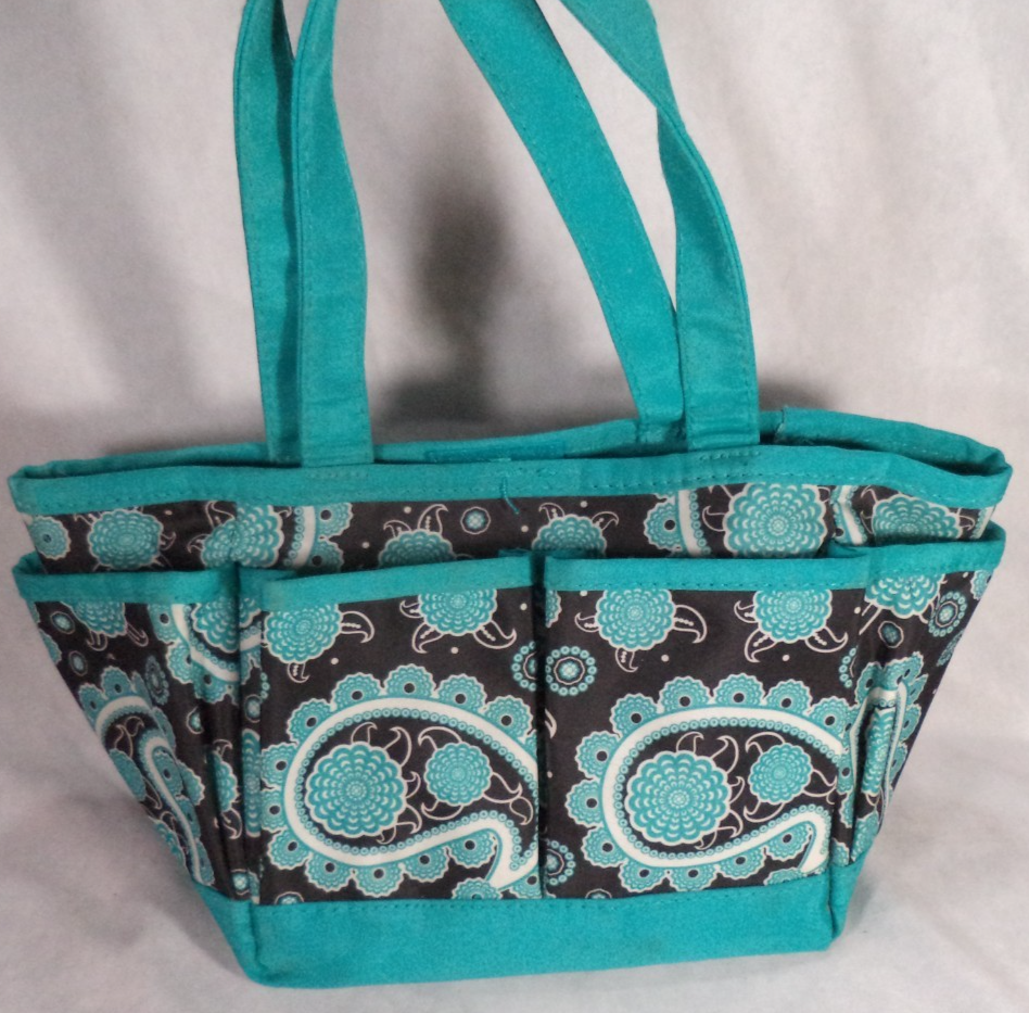 Small Tote Organizer Storage Floral Teal Black Crafts Gardening Double Straps