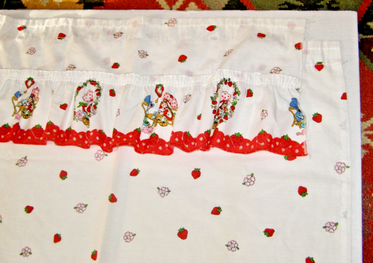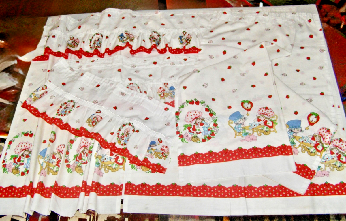 VINT. 6-PC. STRAWBERRY SHORTCAKE + BLUEBERRY MUFFIN CURTAINS + RUFFLED VALENCES