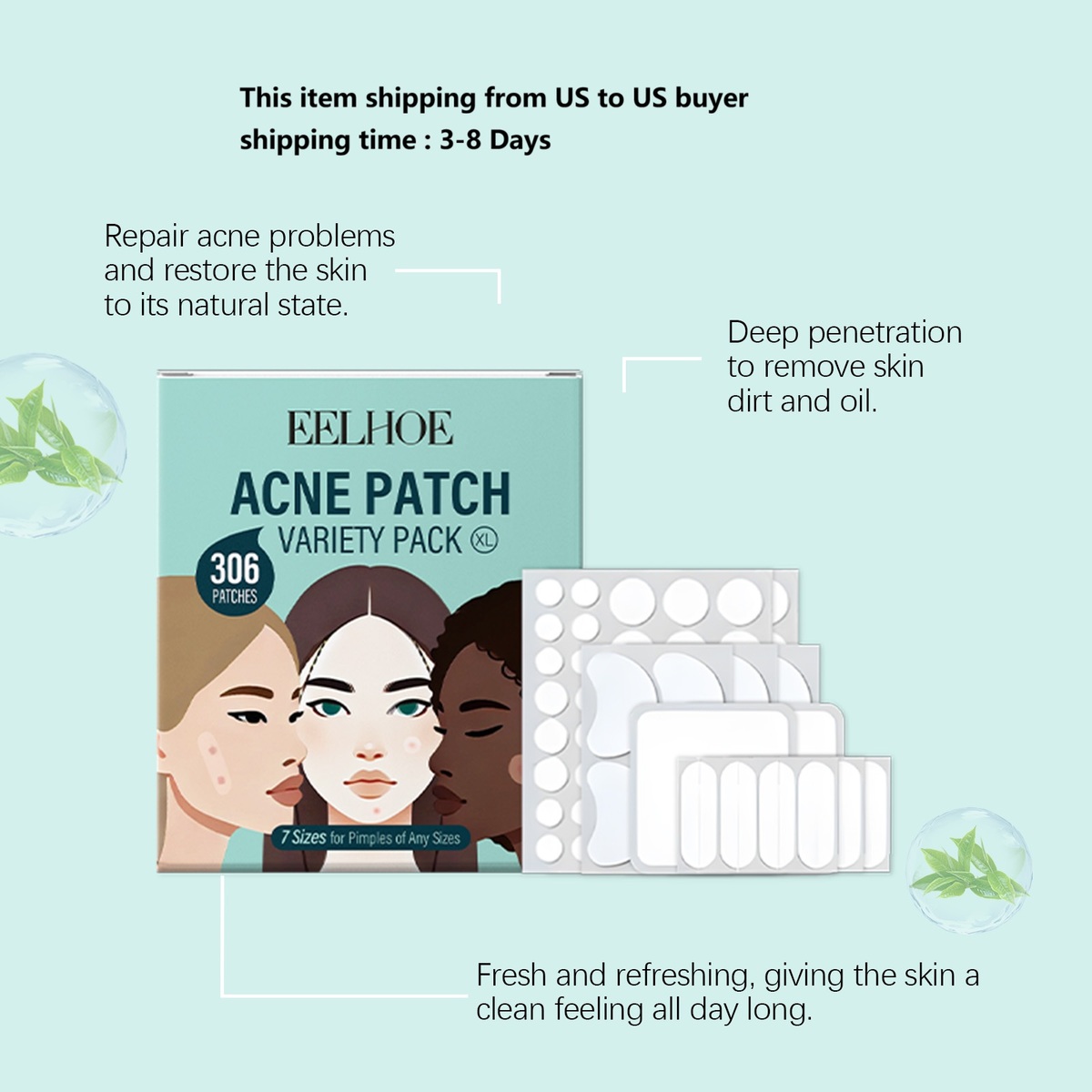 306pcs/Box, Acne Patch Skincare Set, Tea Tree Oil Facial Cleansing Patch