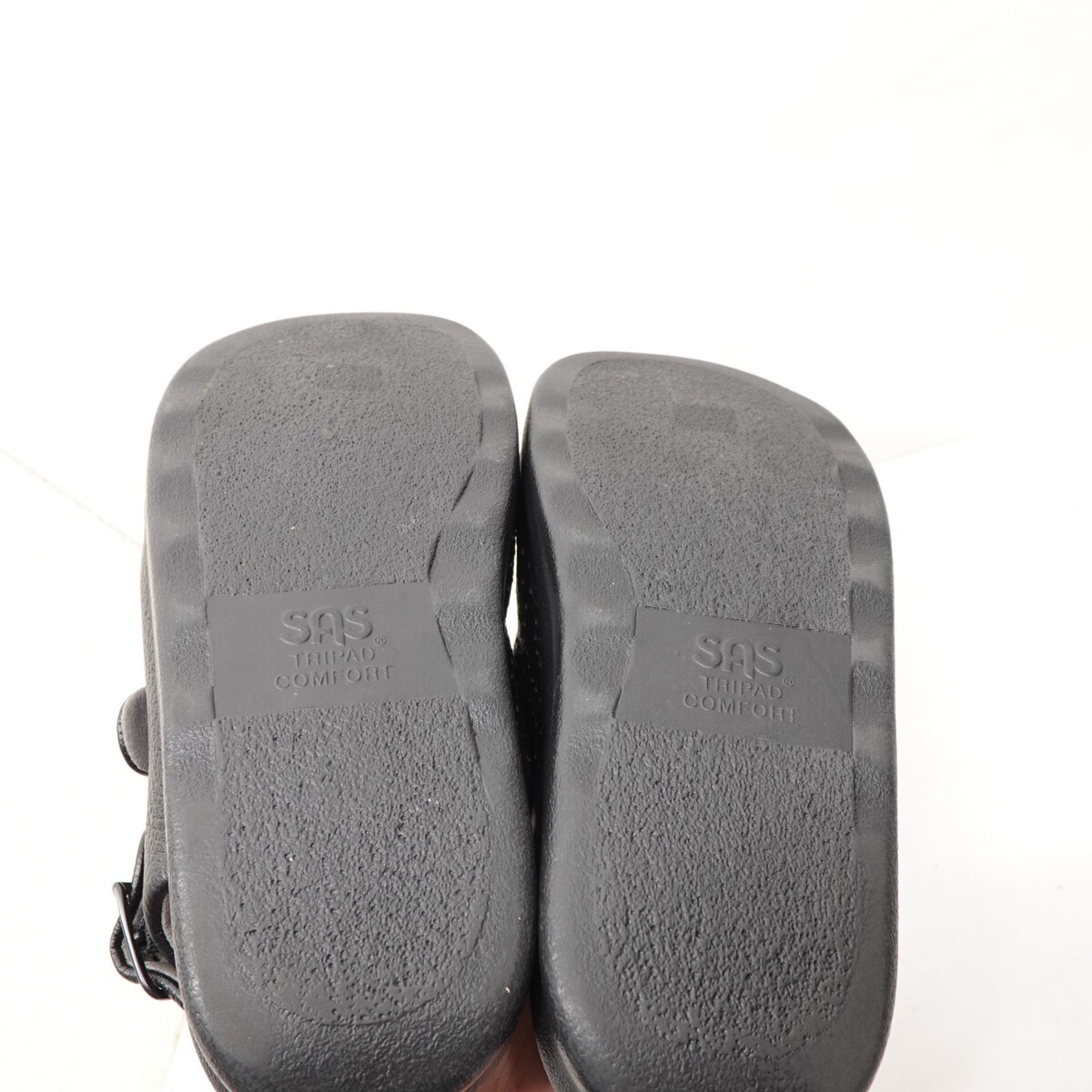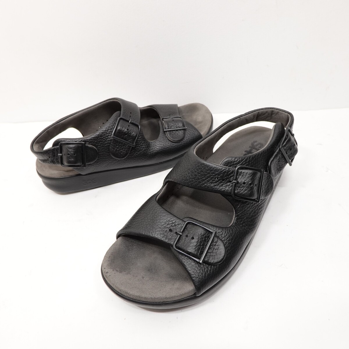 SAS Womens Relaxed Black Leather Double Strap Comfort Sandals Size 8.5 WW